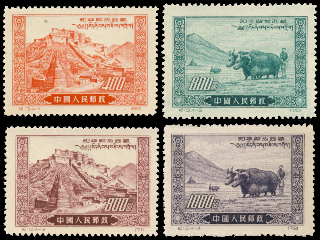 纪念西藏和平解放,全套4枚